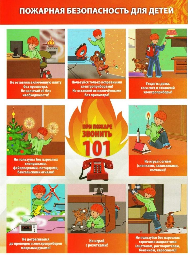 Тушить пожар – дело взрослых, но вызвать пожарников может любой ребенок. Хорошенько заучите номер пожарной охраны. Он не сложный «01». А если у вас есть сотовый телефон, набирайте «112», четко и спокойно произнесите свое имя и адрес, опишите ситуацию, и будьте уверены, к вам на помощь придут обязательно.